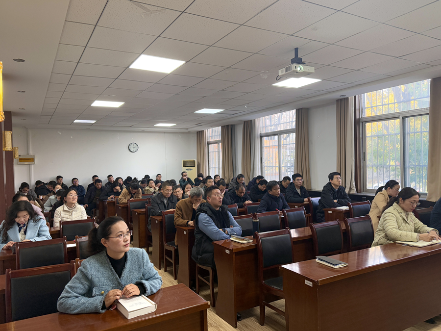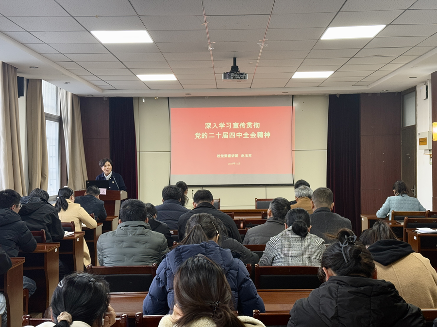 会上,赵玉苏系统传达了党的二十届四中全会精神要义,全面阐释了“十五五”时期经济社会发展的指导思想、目标任务及战略部署。宣讲报告坚持理论联系实际,既立足国家发展全局深化政策解读,又结合教育工作实际强化精神指引,有效提升了学院教师对全会精神的理解把握水平。赵玉苏还围绕学校建设目标,就贯彻落实全会精神、推动学校高质量发展作出具体说明,为学院事业发展指明了方向。