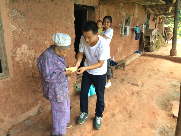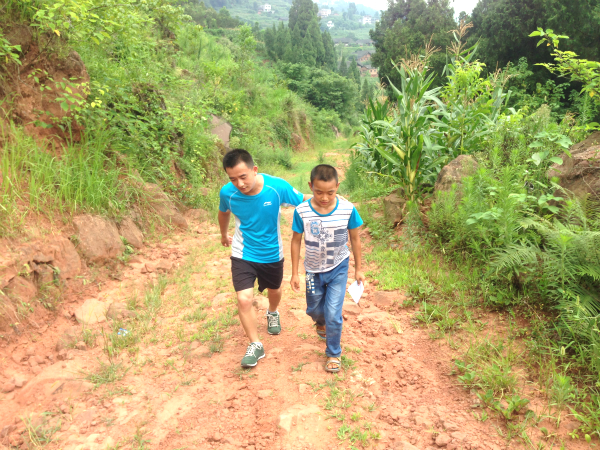 通过家访了解到,13岁的小广是留守儿童,母亲不知所踪、父亲常年在外打工,小广与75岁的奶奶、爷爷生活在一起。在一群孩子中,一眼看去,小广和其他孩子没什么区别。然而,细心的队员却发现他从不主动讲话,很难融入到其他孩子中去。队员们先后三次走访小广家里,与小广爷爷亲切交谈,为小广送去学习用品,带小广一起做游戏。经商议,支教团为小广家送去一笔梦想资助金,并与小广结成了长期一对一帮扶对子,希望能尽自己最大的能力去帮助小广健康快乐地成长。从学校到小广家的路需要一小时四十分钟,队员们难以想象每天的往返小广是怎么熬过来的,他瘦小的身躯里到底有多大的能量。当被问到“每天走这么远的路,你能坚持吗?”小广坚定地点点头:“要上学!”