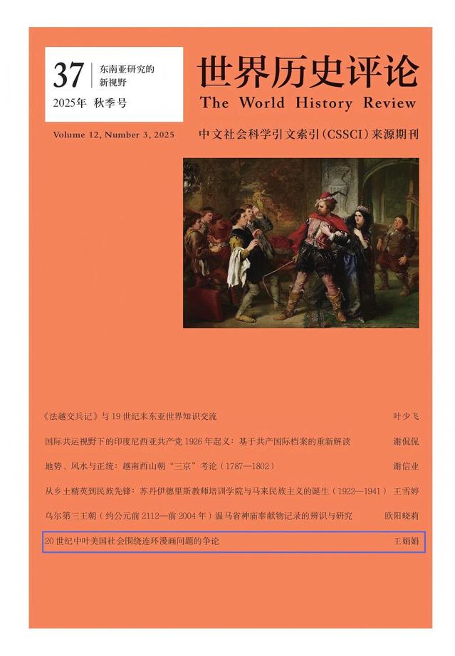中心研究人员王娟娟博士在CSSCI期刊《世界历史评论》2025年第3期(秋季号)刊发江苏师范大学人文社会科学研究基金项目“冷战初期美国书籍审查与公共文化空间治理研究”(19XFRX019)的阶段性成果。本篇论文聚焦冷战时期连环漫画作为独立媒介在融入主流社会中引发的争论。本文对于了解冷战时期西方文化发展与及其社会影响具有重要意义。