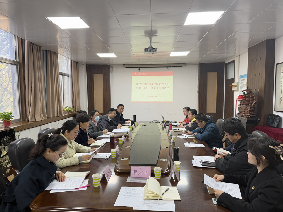 11月24日上午,化学与材料科学学院在20号楼209会议室召开理论学习中心组(扩大)专题学习会,学院党委理论学习中心组全体成员、领导班子成员、全体党支部书记参加本次活动。校党政办赵玉苏主任和宣传部洪扬老师巡学旁听。