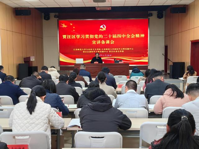 11月20日,我院与徐州市贾汪区新时代文明实践中心在贾汪区共同举办学习贯彻党的二十届四中全会精神宣讲工作动员会暨区委宣讲团集体备课会,贾汪区委常委、宣传部部长、统战部部长朱宝珍,江苏师范大学马克思主义学院院长王冠群、副院长徐彬,徐州市委宣讲团成员、马克思主义学院副教授张志建出席会议,贾汪区委宣讲团全体成员参加会议。