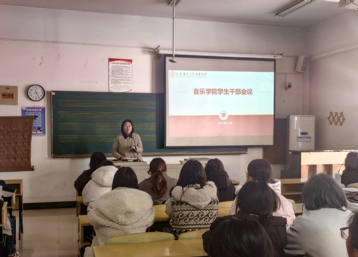 为持续深化学院学风建设,全面提升学生干部服务水平,推动期末复习备考工作扎实有序开展,12月8日中午,音乐学院召开全体学生干部工作会议。学院党委副书记唐婉莹、团委书记经曼及辅导员陈晨出席,全体班长、考勤班长、学习委员以及团委和学生会各工作部门负责人参加会议。