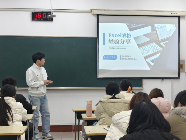 培训坚持“实用、实效、实战”导向,精心设计理论讲授与实操演练相结合的教学模块。在文书处理专题环节,张淼同学通过现场演示,系统讲解了Word的的高效排版与规范处理技巧,为提升公文写作与材料报送质量提供了清晰指引。在数据管理板块,余坤同学结合团务信息统计实际,深入剖析Excel在数据整理、分析与可视化中的关键应用,助力干部增强用数据决策、靠数据管理的能力。在宣传素养提升部分,朱宸萱同学以优秀活动影像为案例,生动阐释了纪实摄影的构图、用光与叙事方法,强调影像资料不仅是活动记录,更是组织形象与青年风采的重要展现,鼓励大家用镜头传递正能量、弘扬主旋律。