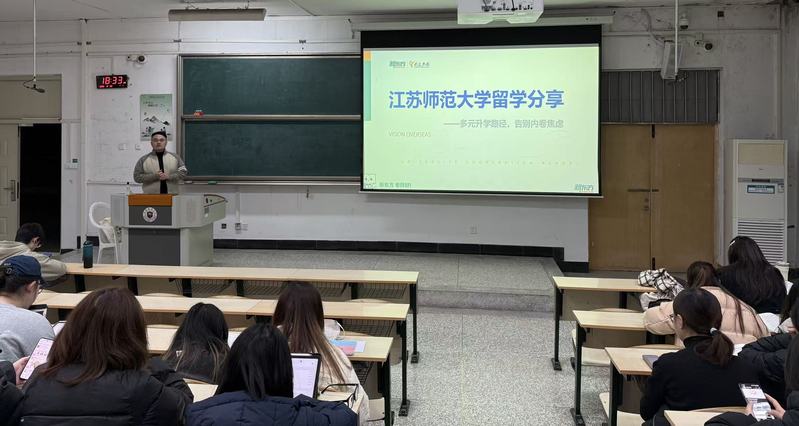 为扎实推进毕业生高质量就业,助力学生明晰出国出境升学路径,12月8日晚,传媒学院特邀徐州新东方出国出境咨询机构来校开展出国出境升学指导专题宣讲与咨询活动。学院2023级全体学生参与本次宣讲会。