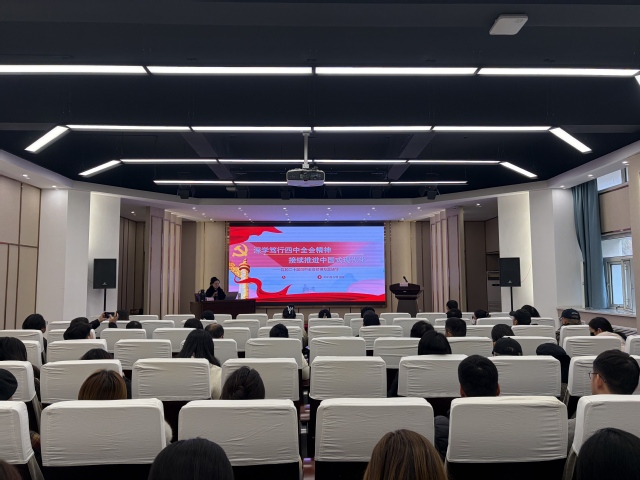 12月10日下午,美术学院召开学习贯彻党的二十届四中全会精神宣讲会暨党委理论学习中心组(扩大)专题学习会。学院党委书记杨仲迎主持会议,学院全体教职工和党员学生代表参加宣讲会。党委理论学习中心组成员及党支部书记参加后续专题学习,校宣讲团成员、马克思主义学院副教授李丹及宣传部符靖璇同志到场巡学旁听。