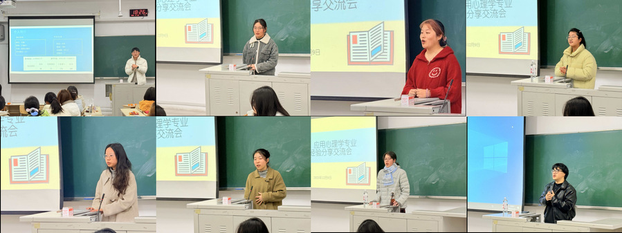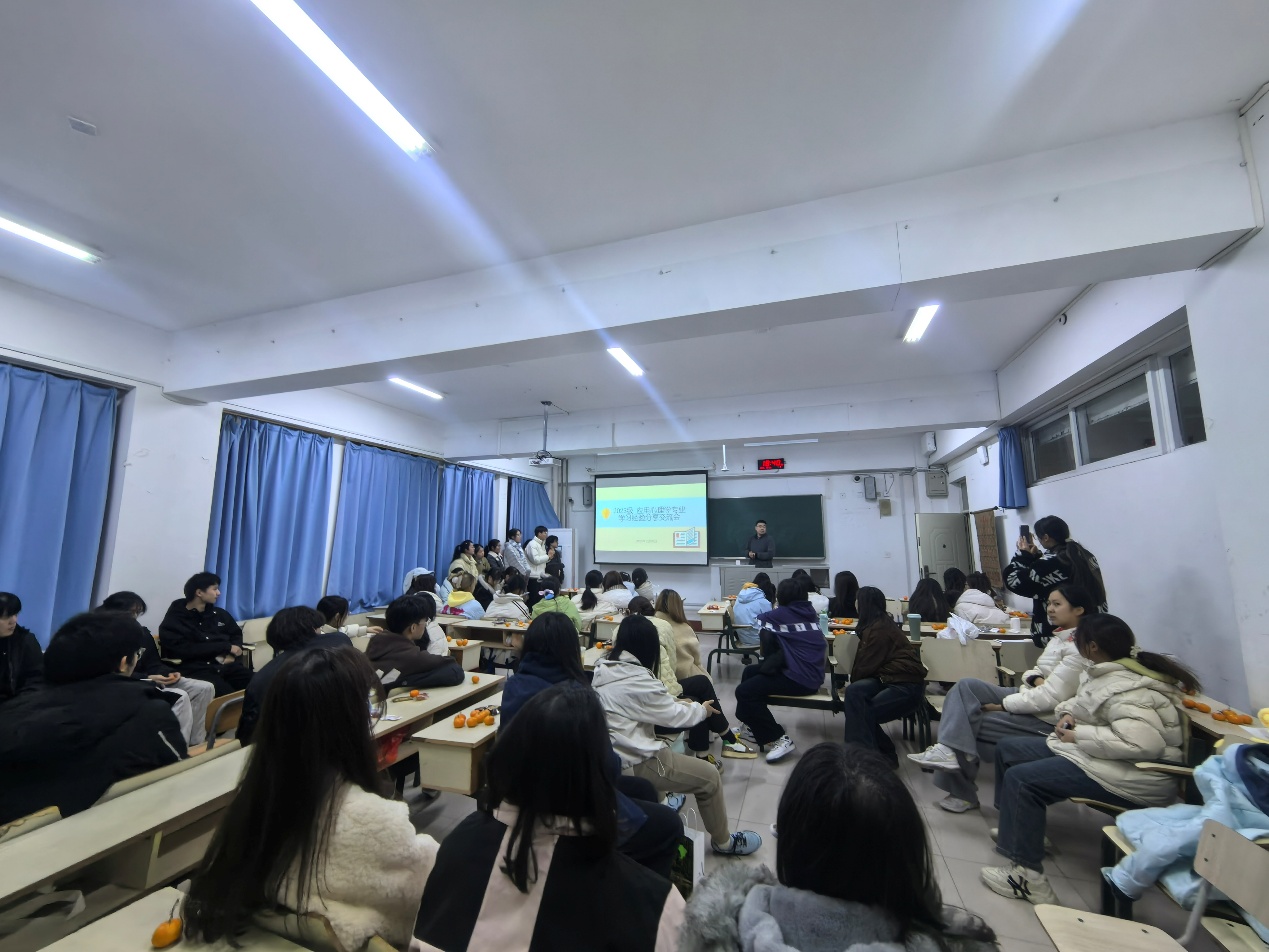 2025年12月9日晚6:20,教育科学学院2025级应用心理学专业在31号楼106教室成功举办了2025级应用心理学专业学习经验分享交流会。本次分享交流会由石春和李广政两位老师主持,邀请了4位2022级应用心理学专业保研同学和4位2021级成功考取本校研究生的同学参加。