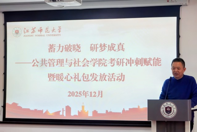 为助力考研学子坚定备考信心、提升冲刺效能,12月10日下午,公共管理与社会学院在学院报告厅举办“蓄力破晓研梦成真”考研冲刺赋能暨暖心礼包发放活动。院长祝天智教授出席活动并作冲刺动员辅导,50余名考研学生代表参与活动,现场洋溢着温暖与奋进的力量。