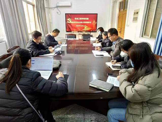 12月11日上午,机电工程学院党委理论学习中心组开展12月专题学习会,院党委理论学习中心组全体成员及行政党支部全体党员参会,会议由院党委书记姜南主持。