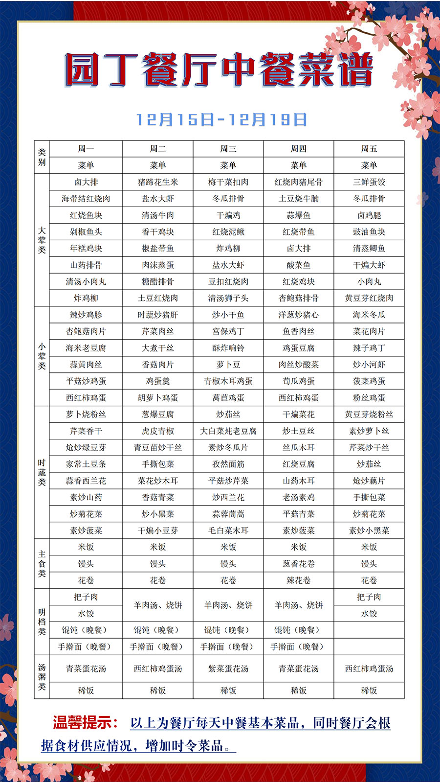 根据大数据分析,餐厅11:25-11:35、11:45-11:50、12:00-12:05三个时间段为就餐高峰期,为了减少排队等待时间,老师们可以选择错峰就餐。