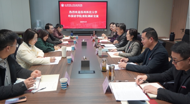12月11日下午,苏州科技大学外国语学院党委书记李敏、院长綦亮一行5人莅临我院调研交流。学院全体领导班子成员出席交流会,会议由党委书记王淑文主持。