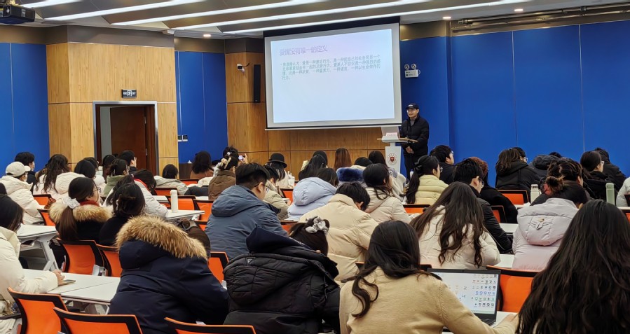 本次讲座特邀教育科学学院心理学系杜向阳老师担任主讲。杜老师以通俗生动的语言、鲜活真实的案例,将专业心理学理论与青年群体的情感实际相结合,围绕爱情的本质、吸引力的形成与情感困惑的自我调适等主题进行分享,引导青年树立积极健康的婚恋观念,构建科学的情感认知体系。