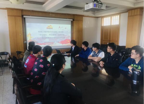 为了深入推进“不忘初心、牢记使命”主题教育工作,根据学校“不忘初心、牢记使命”主题教育实施方案和相关活动要求,10月15日,机电工程学院本科生第一党支部在12#606A会议室开展《“不忘初心、牢记使命”——如何发挥学生党员的先进作用》主题教育党课活动。党课由机电工程学院学生第一党支部书记丁永剑主讲,支部全体党员参加学习。