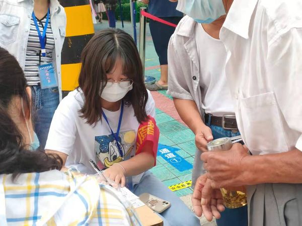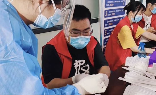 面对日益严峻的疫情形势,19机61班李子杰同学在南京市疫情危急时刻勇于担当,在南京市第三次全民核酸检测前积极响应所在街道志愿者招募号召,报名参加了南京市鼓楼区宝塔桥街道青年志愿活动,负责核酸检测信息登记工作。
