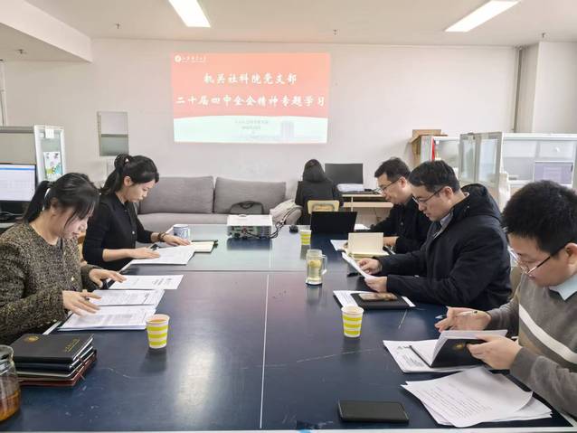 12月15日上午,机关社科院党支部在静远楼1806室开展党的二十届四中全会精神专题学习。党支部书记吕靖波同志主讲,支部全体党员参加学习。