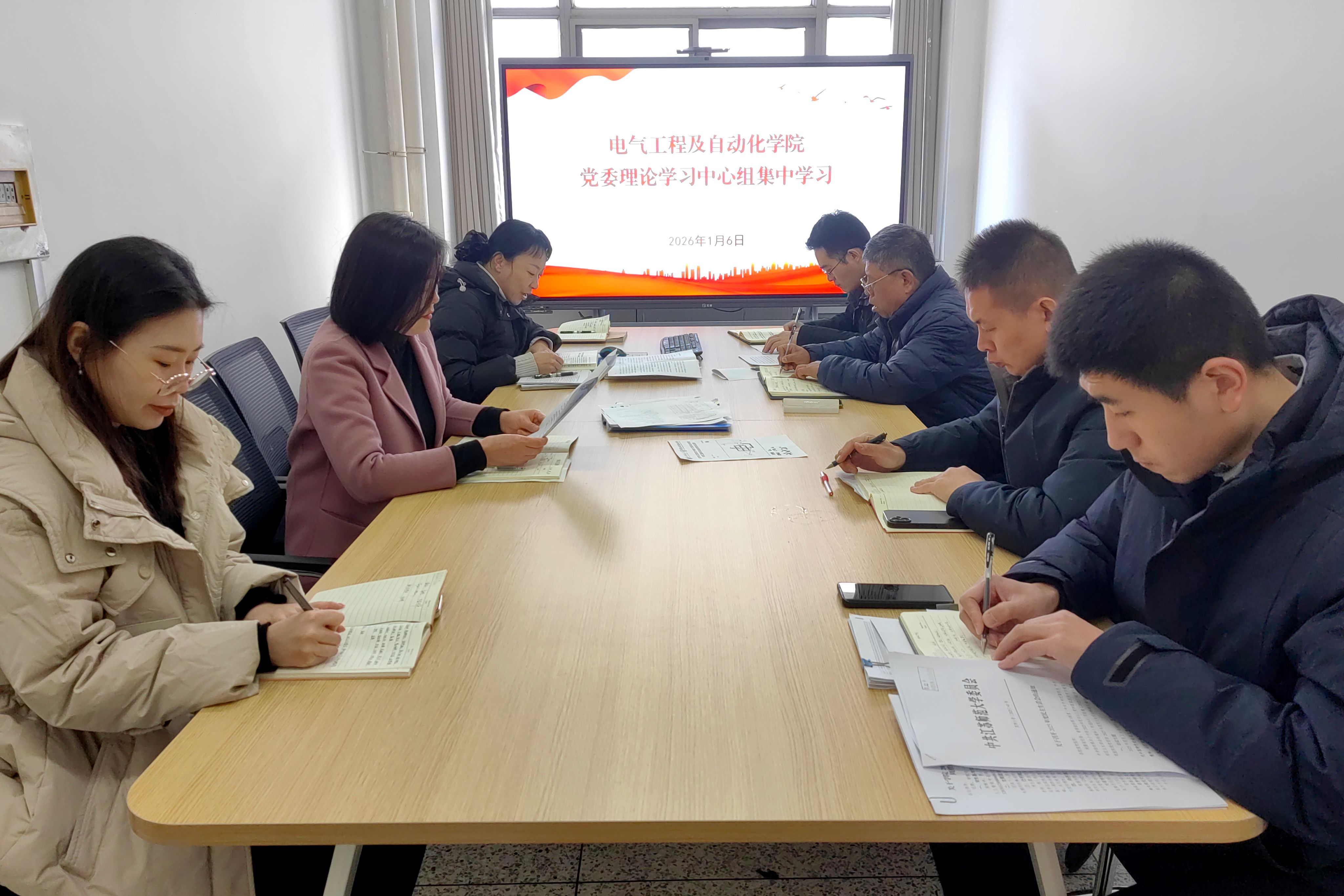 1月6日上午,电气工程及自动化学院党委理论学习中心组开展专题学习,党委理论学习中心组全体成员参加学习,党委书记潘震鑫主持会议。