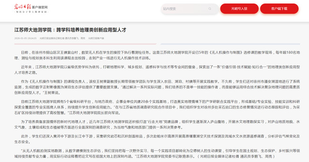 光明日报客户端1月5日报道我院跨学科培养地理类创新应用型人才相关工作,报道内容如下: