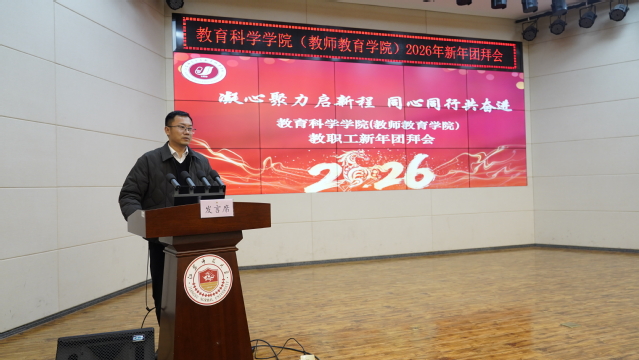 1月15日下午,教育科学学院(教师教育学院)举办“凝心聚力启新程,同心同行共奋进”2026年新年团拜会。全体教职工齐聚一堂,回首奋斗路,展望新征程。