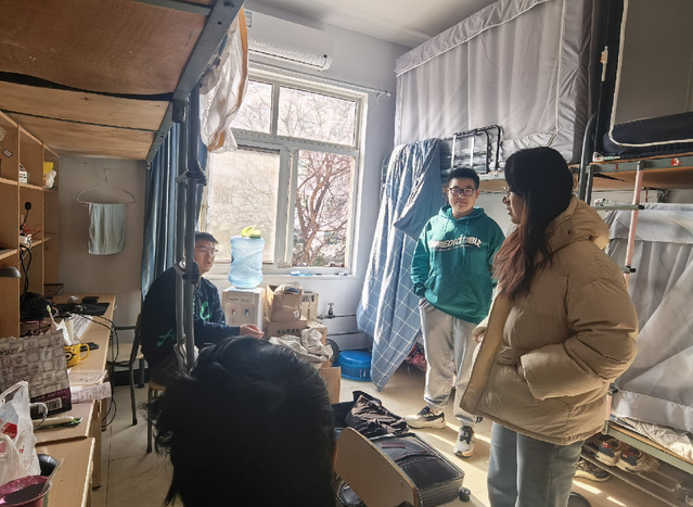 各年级辅导员走访学生宿舍,关心学生假期返乡与安全离校情况,重点排查用电安全、财物保管及消防设施等情况。走访过程中,辅导员详细叮嘱学生离校前务必切断电源、关闭水源、锁好门窗,严禁使用违规电器,并妥善保管个人贵重物品,确保宿舍安全无隐患。