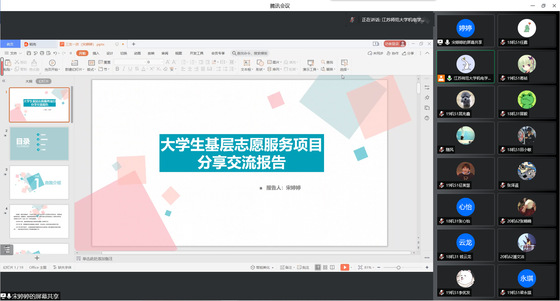 本次宣讲会邀请基层工作校友与同学们云端共话未来,2020届毕业生宋婷婷分享了甘肃省“三支一扶”基层工作经历,她主要介绍了“三支一扶”的招募流程、备考攻略、工作情况和感悟,鼓励毕业生们做好充分准备,积极投身基层就业。