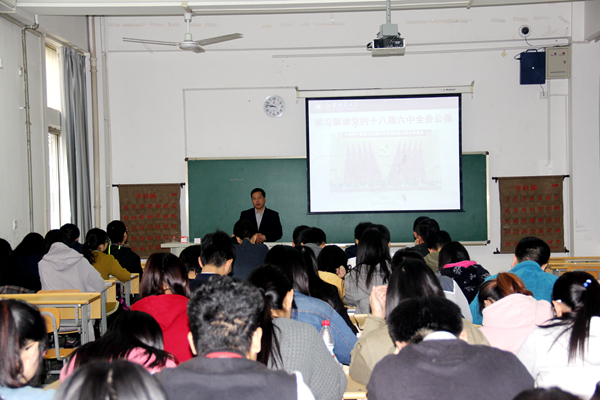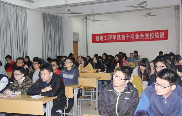 10月30日下午2:30,机电工程学院党委刘福义书记在12#104C为我院第十期业余党校学员作了题为“党的十八届六中全会公报学习与解读”的专题讲座。