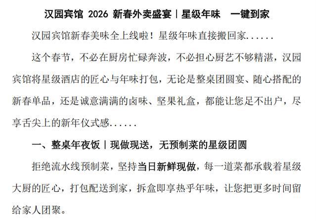 汉园宾馆 2026 新春外卖盛宴