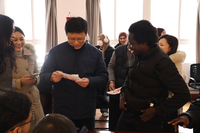 2月10日,正值中国传统“小年”,校党委常委、副校长商亮在国际合作交流处(国际学院)领导班子陪同下,与来自30余个国家的200余名留校留学生欢聚一堂,共迎农历马年新春,传递学校的关怀与温暖。