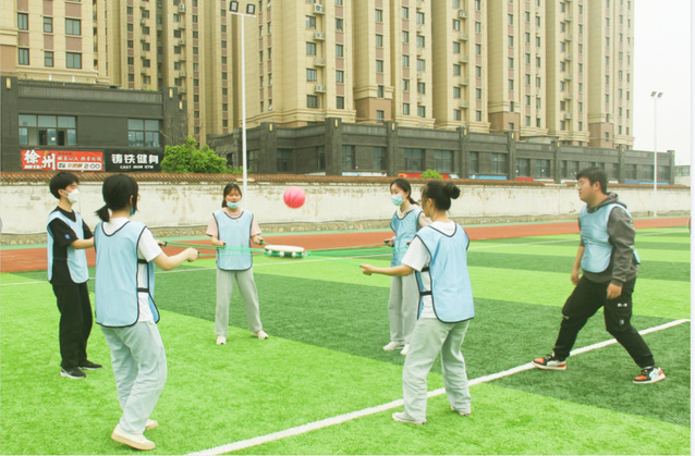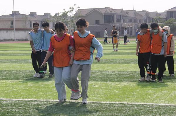 活动现场,同学们随机分成四组,以团队形式参加“两人三足跑”、“心心相印”、“齐心协力”、“踩气球”、“托球跑”5项富含趣味性及协作性的拓展游戏。同学们按照游戏规则在裁判指挥下积极参与,勇于承担,默契十足,现场气氛十分活跃。
