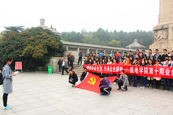 11月6日上午8:30,机电工程学院第十期业余党校将理论学习与实践相结合,组织全体学员赴淮海战役烈士纪念塔开展了“瞻仰革命先烈,传承红色精神”主题教育和公益实践活动。