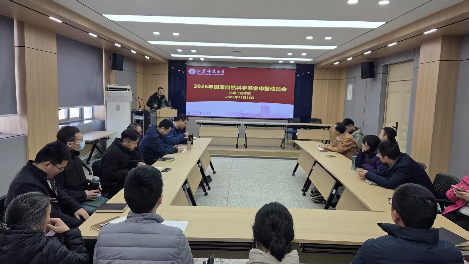 为推进我院国家自然科学基金项目高质量申报,学院按照科研院的部署,自2025年10月启动筹备,学院实行全流程精细化服务,2025年11月18日,学院召开2026年国家自然科学基金申报动员大会,全体申报教师参会。会上,学院领导传达申报最新政策要求,分析学院申报优劣势,明确目标任务与时间节点。学院首次推出专项支持举措:为每位申报教师配备院内辅导专家,实行全过程跟踪指导、全周期质量把关,围绕申请书选题凝练、立项依据、研究内容、创新点提炼、文本打磨等核心环节逐一辅导,以精准化、专业化服务助力申报书质量提升。