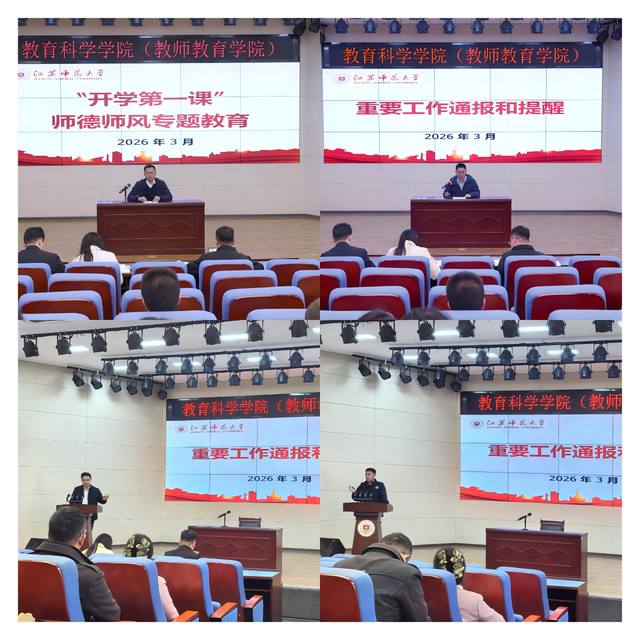 随后,孟德会带领教职工学习了《教育部等六部门关于加强新时代高校青年教师队伍建设的指导意见》及《江苏师范大学教师师德手册》等重要文件,通报了高校师德师风失范典型案例,集中观看了“最美教师人物”短片,引导教职工严守师德师风底线,树立正确业绩观,成为教书育人的大先生。