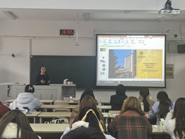 座谈会结束后,唐蓉女士走进敬文书院,面向涉外法学实验班学生开展交流学习宣讲。她详细介绍了西班牙的教育环境、马德里康普顿斯大学的专业特色及交流项目优势,并就学生关心的学习内容、生活安排、申请条件等问题现场答疑解惑,与同学们亲切互动,现场氛围热烈。