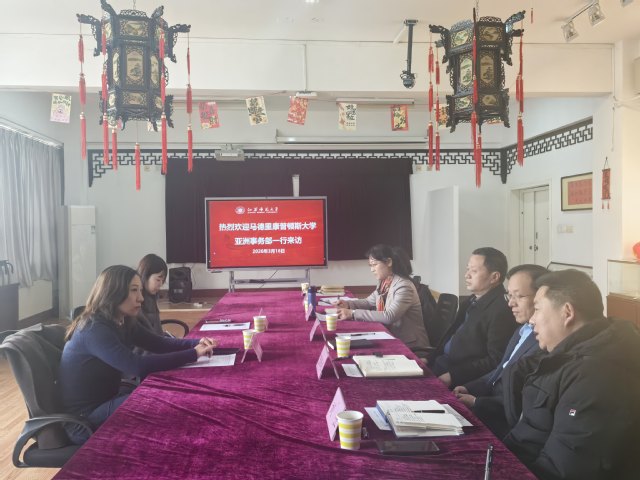 为进一步推进人才培养国际化,拓宽涉外法学专业学生国际视野,3月16日下午,我校特邀马德里康普顿斯大学亚洲事务中心南京办事处负责人唐蓉女士一行来访,就敬文书院涉外法学专业学生赴西班牙交流学习召开专题座谈会。法学院院长张峰振、副院长张杰,国际合作交流处副处长李丹、敬文书院党委书记兼院长薛深、副书记兼副院长刘江、外国语学院蓝博老师等出席会议。会议由国际合作交流处副处长李丹主持。