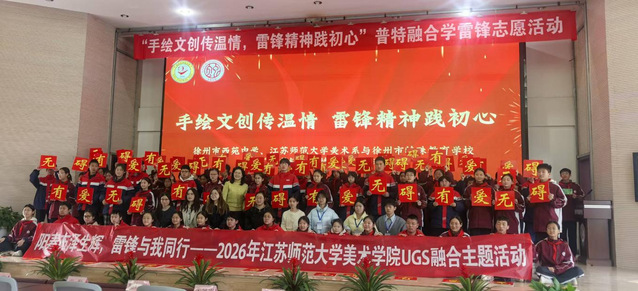3月16日,一场别开生面的爱心活动在徐州市特殊教育学校温情启幕。我院师生与西苑中学学子带着亲手创意设计、精心绘制的帆布袋,走进特校慰问那里的学子。此次活动既是我院践行学雷锋精神的具体行动,也是在UGS三位一体协同育人机制下,推进美术学师范专业培养的重要实践举措。