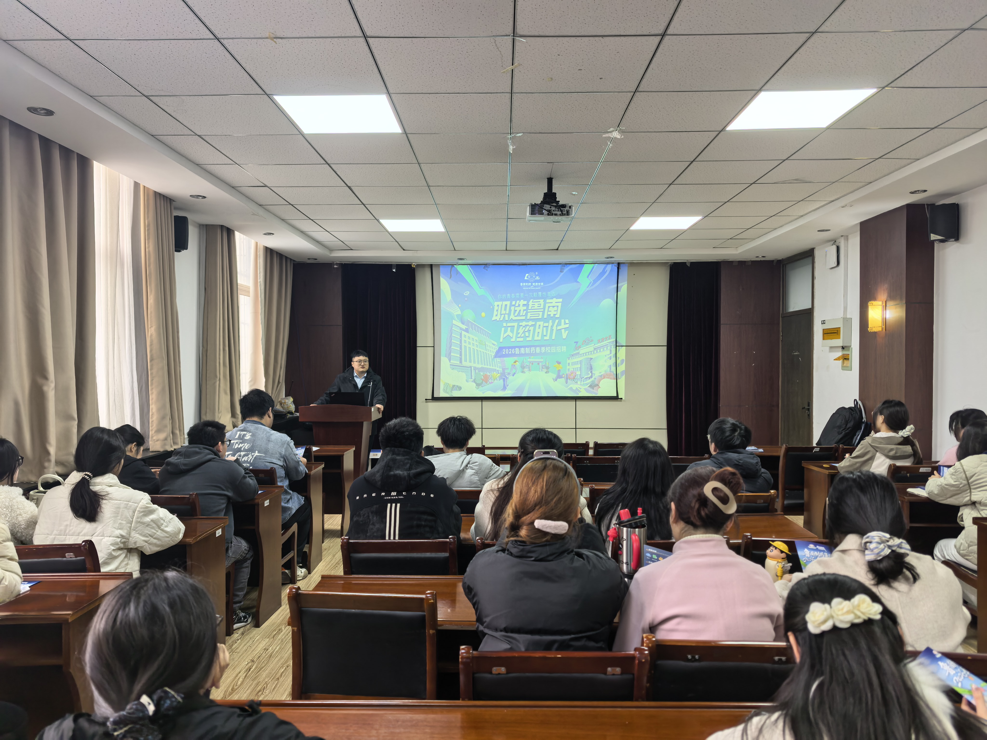 宣讲会上,鲁南制药集团招聘负责人全面介绍了企业发展历程、产业布局、科研实力及人才战略。此次招聘重点面向化学、化工、材料、药学、生物等相关专业毕业生,与学院专业设置契合度高、匹配性强。