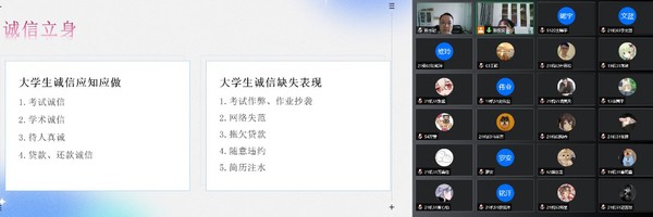 5月11日,学院召开了“诚信立身感恩前行”线上专题会议。会上,院党委副书记陈晓林详细阐释了诚信、感恩的内涵以及意义。靳老师从学术诚信、考试诚信、助贷诚信等方面讲述了当前大学生的诚信现状,引导学生思考诚信、感悟诚信的价值和意义,做到言必诚信,行必忠正。会上,学院组织同学们集中观看了奥斯卡经典感恩动画《光之塔》,引领同学们感悟父母的养育之恩,体会老师的栽培之恩,朋友的帮助之恩,社会的资助之恩等,用自己的感恩之心回馈社会,帮助他人。最后对防范金融电信诈骗进行了宣传教育,提高学生的防范意识,避免上当受骗。