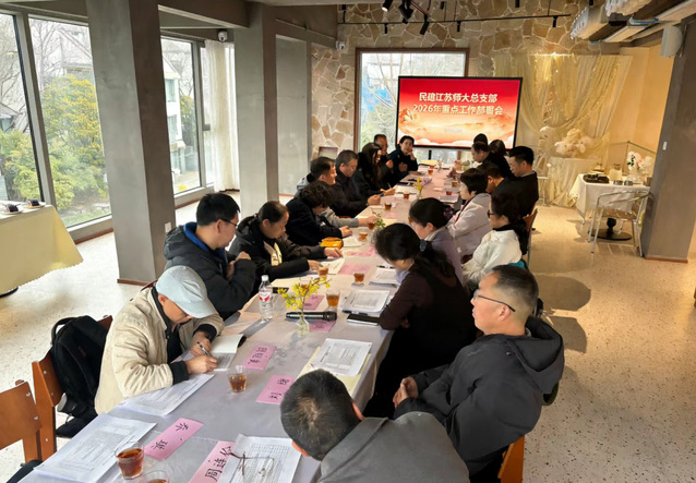 周晓云部署了江苏师大总支部2026年的重点工作。一是开展改进作风建设年活动,确保会员紧跟时代步伐,抓牢思想政治建设,全面加强自身建设,持续推进总支部的制度化与规范化建设。二是切实履行参政议政职能,提高参政议政成果质量,充分发挥高校智力优势,严格执行“第一议题”制度,每季度至少组织一次全体会员集中学习,每年总支部至少提交2篇高质量理论文章或心得体会。三是持续打造社会服务特色品牌,不断深化拓展“携手育星”“校企联合”等特色活动纵深。四是持续提升会员发展质量,加大发展高层次优秀会员力度。随后与会人员围绕总支部2026年度活动计划集思广益、踊跃发言,提出了一系列可操作的意见建议。