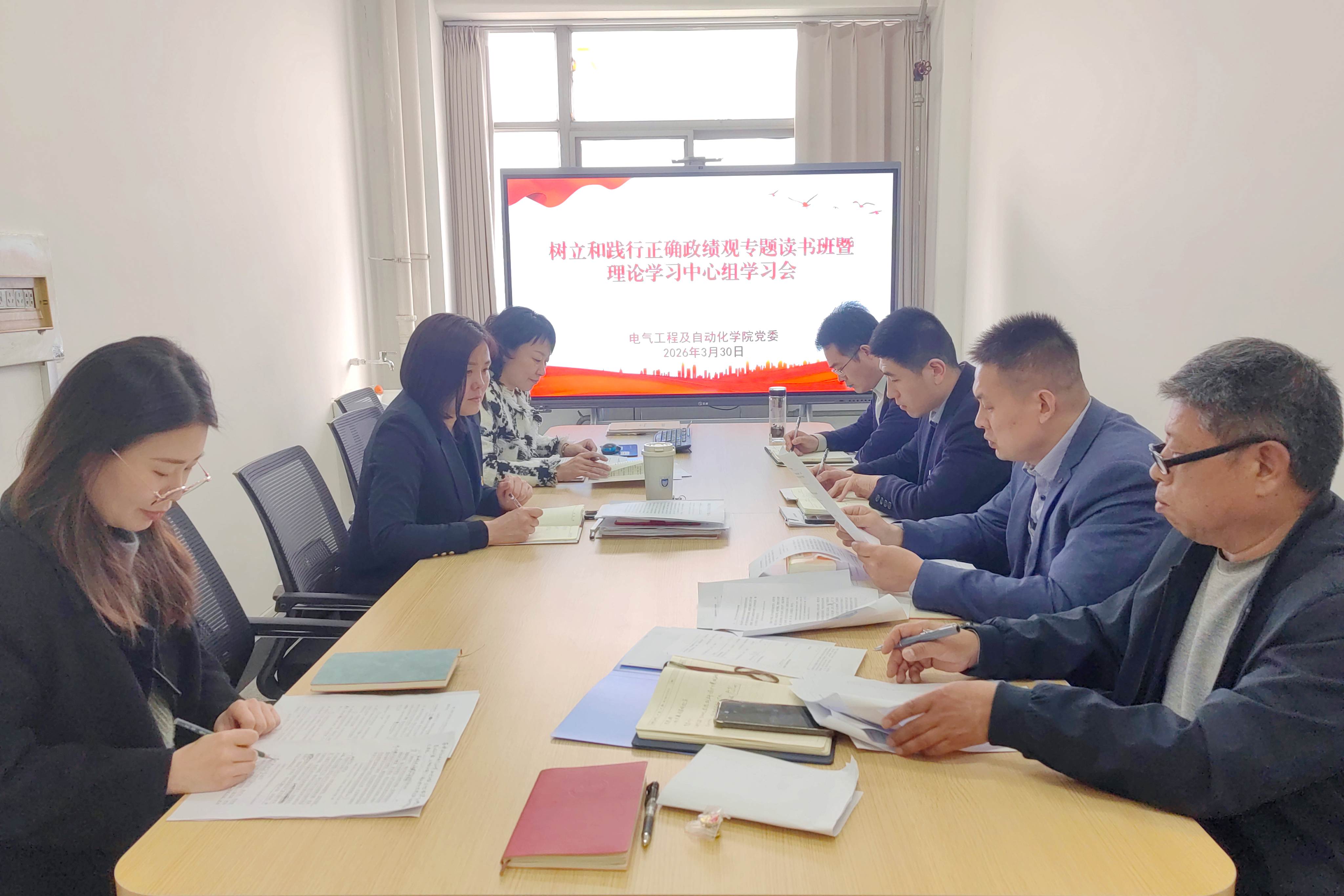 3月30日上午,电气工程及自动化学院召开树立和践行正确政绩观学习教育专题读书班暨党委理论学习中心组学习会议。院党委书记潘震鑫主持会议,党委理论学习中心组全体成员参加学习。