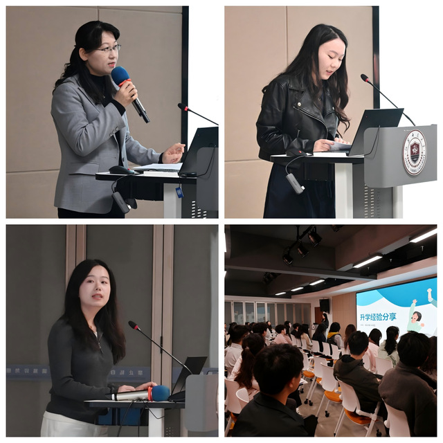 在专题交流环节,三位嘉宾从不同的视角出发,为在场师生提供了学业发展规划与学历提升路径指引。国际合作交流处副处长李丹围绕“涵养全球视野,成就卓越未来”主题,从大学生全球胜任力提升、出国(境)深造发展规划两个维度,对出国(境)升学进行了系统性介绍。2026届毕业生代表敬文书院平青芸、中俄学院陈瑜佳两位同学,结合自身成功申请香港大学、伦敦大学学院的经历,分享了出国(境)升学的申请历程和规划经验。