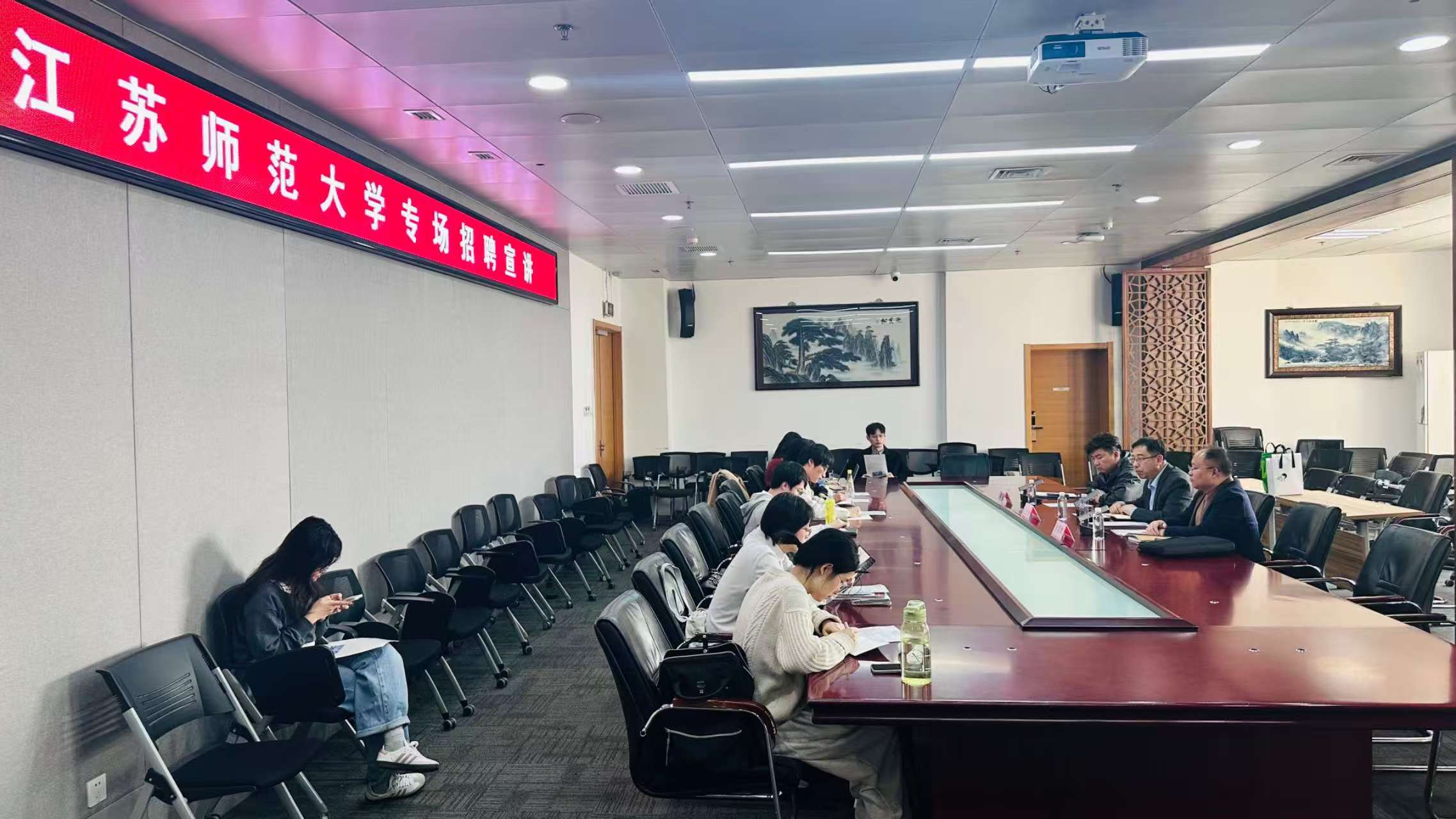 调研期间,文学院一行与四所高校中文学科负责人、学科带头人及骨干教师围绕核心议题深入座谈交流,重点研讨了数字人文、语言智能等交叉等专业方向的探索实践,详细了解各高校“十五五”规划编制的总体思路、重点任务、学科布局优化与“双一流”建设路径,深入学习了文科强校在师资队伍建设、高层次人才引培机制、学科评估与质量监测体系构建等方面的经验做法,并就博士研究生招生选拔机制、培养方案设计、课程体系建设、开题与中期考核及论文评审质量保障、导师队伍建设管理、毕业生多元就业引导等关键环节作了学习借鉴。在同步开展的专场人才招聘会上,文学院向优秀青年学者、博士研究生详细介绍了我校的学科优势、发展平台、引才政策与保障待遇,耐心解答职业发展、科研支持、生活保障等问题,与多位意向人才达成初步合作共识。