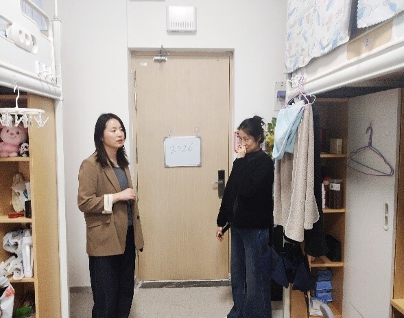 会后,全体班主任走访学生宿舍,实地了解同学们的在校表现与生活状况。走访过程中,班主任与同学们面对面亲切交流,细致询问学业进展、宿舍环境,认真倾听大家对学院管理工作的意见建议,将学校的关心关怀切实传递给每一位在校学生。