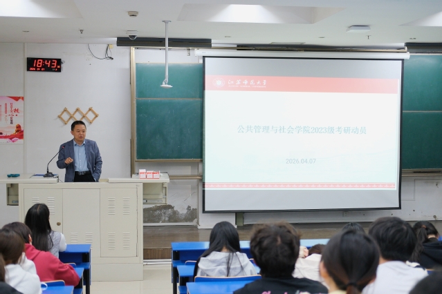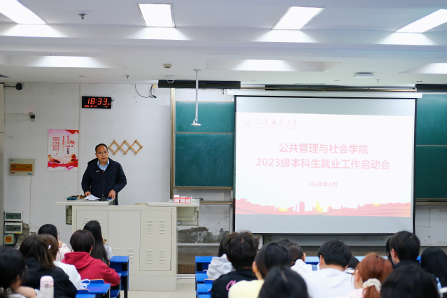4月7日,江苏师范大学公共管理与社会学院召开2023级本科生就业工作启动会。院长祝天智、院党委副书记徐作锋、学工办主任姚峥嵘、2023级全体本科生参加了活动,会议聚焦就业形势分析、就业指导安排、考研动员与经验分享,帮助同学们明晰前行方向。