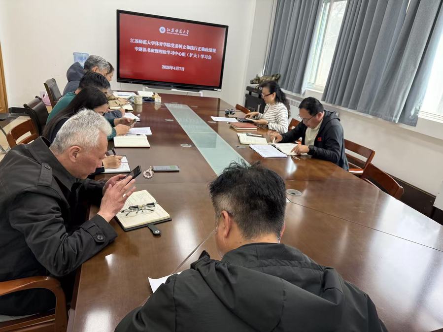 4月7日下午,体育学院举办树立和践行正确政绩观专题读书班暨院党委理论学习中心组(扩大)第三次集体学习会。结合《习近平关于树立和践行正确政绩观论述摘编》,深入学习习近平总书记关于树立和践行正确政绩观的重要论述。院党委书记房冬梅主持会议,院党委委员及领导班子成员参加会议。