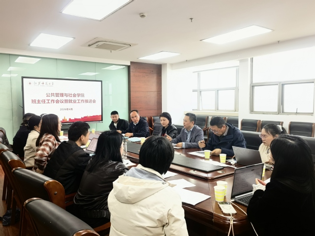 为进一步强化学生思想政治教育和管理服务工作,提升班主任育人能力,扎实推进心理健康教育与毕业生就业攻坚行动,4月8日,公共管理与社会学院在静远楼1508会议室召开班主任工作会议。学院党委书记李丹、院长祝天智出席会议,各系主任、党支部书记、全体班主任参会。