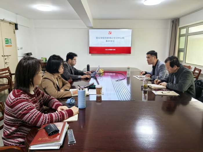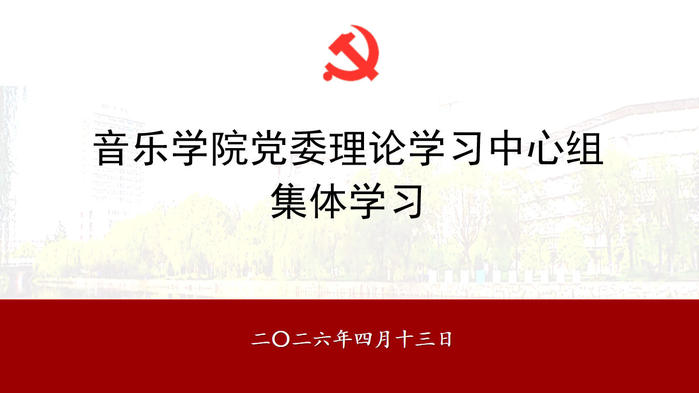 4月13日上午,音乐学院党委理论学习中心组举行了2026年度第三次集体学习,学院党委委员、领导班子成员参加学习,党委书记高小平主持学习。