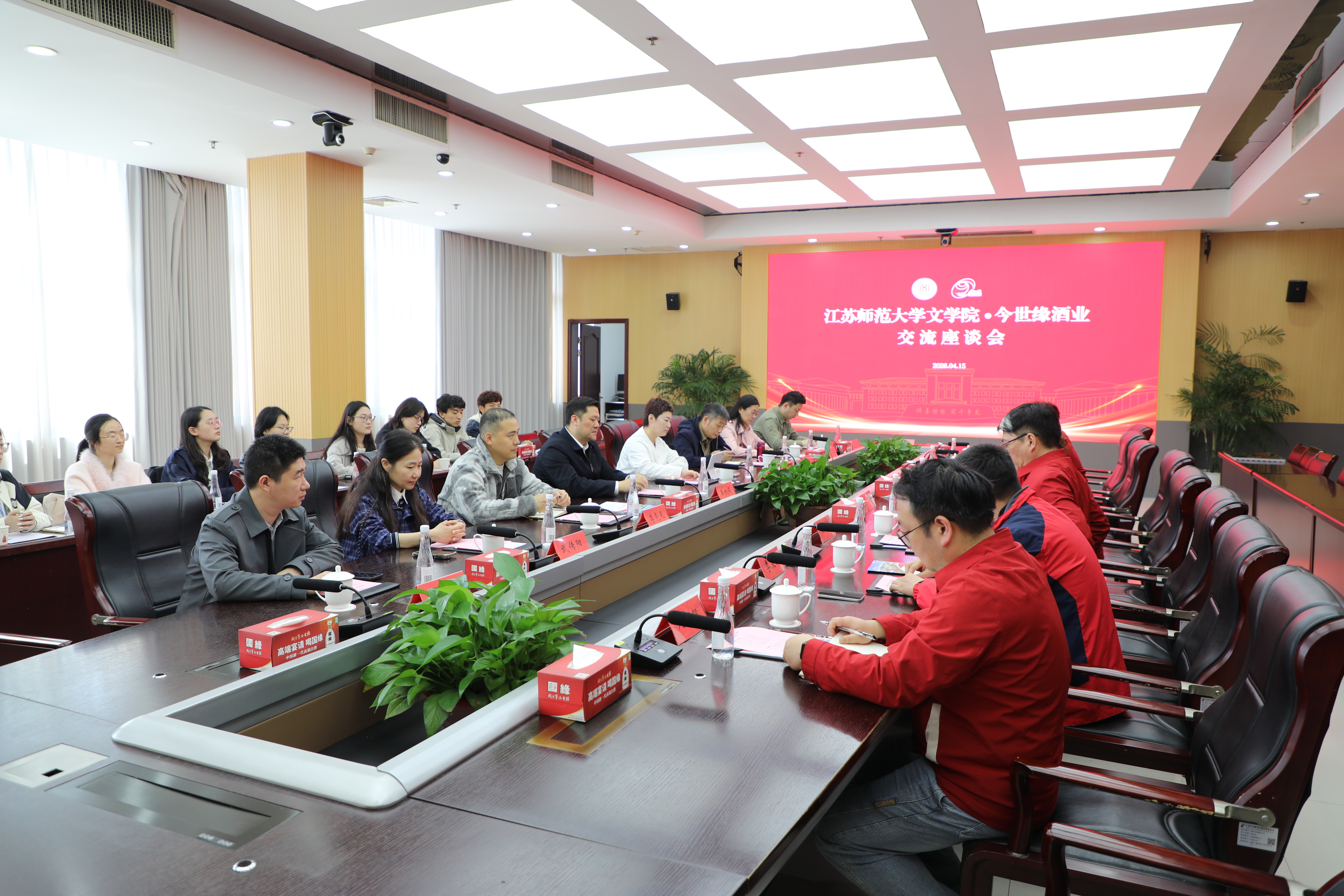 为拓宽大学生就业渠道,深化校企合作,推动学科专业优势与企业发展需求深度融合,4月15日,文学院师生赴江苏今世缘酒业股份有限公司开展访企拓岗和社会服务专题调研。今世缘酒业党委副书记、工会主席鲁正波出席调研座谈,企业各相关部门负责同志,文学院党委书记葛大伟、党委副书记宗倩及秘书学专业教师、学生代表参加座谈。
