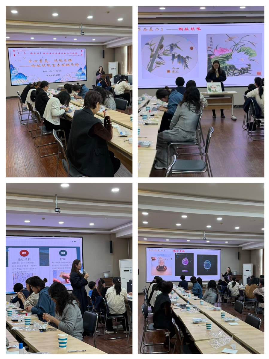 4月15日下午,物电学院依托江苏省劳模创新工作室,精心举办“匠心育美,珐琅生辉”掐丝珐琅艺术探微活动,全校30余位教师齐聚一堂,在指尖非遗中感悟匠心之美。