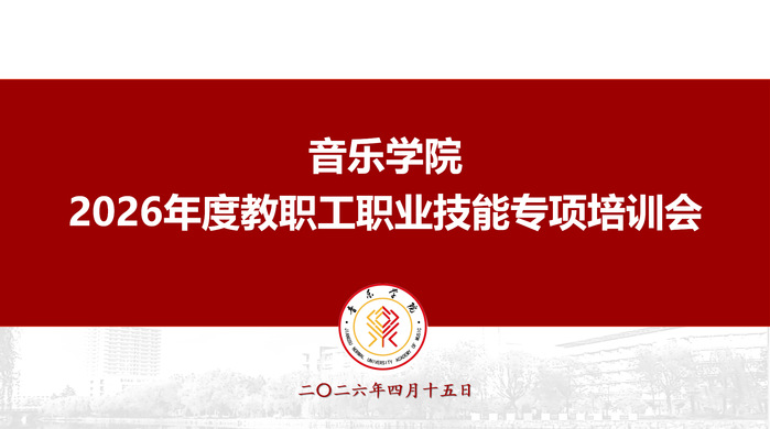 为了贯彻学校“干部能力提升年”相关部署要求,提升教职工政治素养和业务实操能力,4月15日下午,音乐学院举行2026年度教职工职业技能专项培训会。