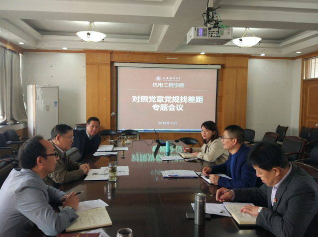 11月13日上午,按照“不忘初心、牢记使命”主题教育相关要求,机电工程学院领导班子召开对照党章党规找差距专题会议,会议由党委书记刘福义主持,领导班子全体成员参加。