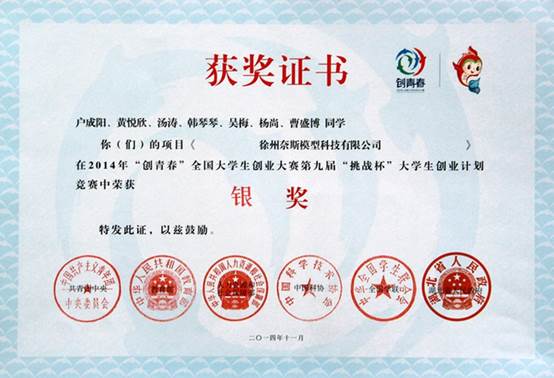 2015年获“挑战杯”大学生课外学术科技作品竞赛全国二等奖