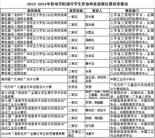 近两年来学院部分学生参加科技创新比赛获奖情况一览表